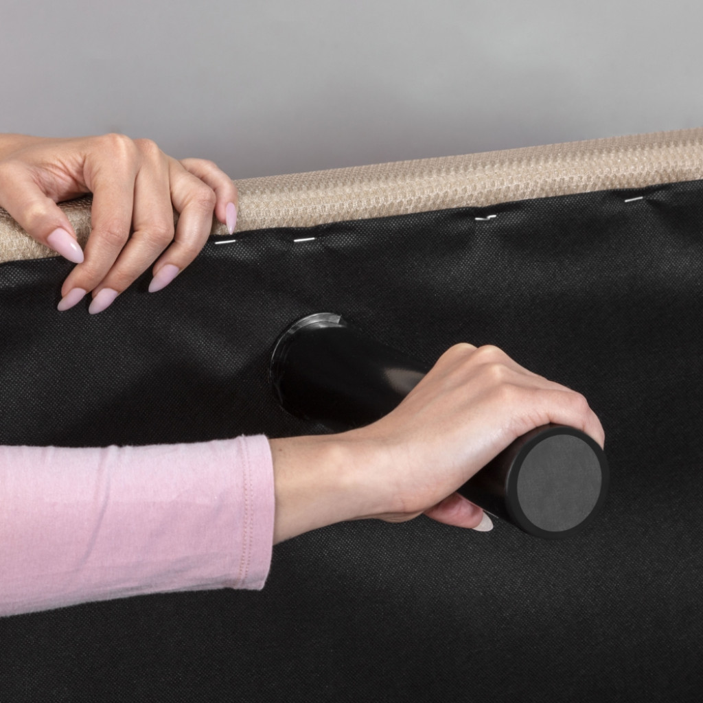 De excelente estabilidad y firmeza. La base tapizada de acero inoxidable es un soporte idóneo para cualquier tipo de colchón. Evita deformaciones o roturas con el movimiento o el extra de peso. Es transpirable por lo que favorece la aireación y ventilación del colchón, y además ofrece propiedades antideslizantes para evitar desplazamientos. Incluye también 4 válvulas de transpiración.