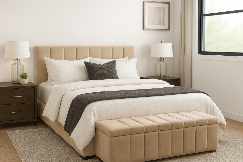 Este cabecero acolchado en tela combina elegancia y confort, aportando un toque sofisticado a cualquier dormitorio. Su estructura está realizada en madera de alta calidad y se puede fabricar a medida para adaptarse perfectamente a cada espacio. Además, ofrecemos una amplia gama de colores y tejidos para personalizarlo según tu estilo y decoración. Posibilidad de vender solo el cabecero o la cama completa a juego. Disponible Todas las Medidas.