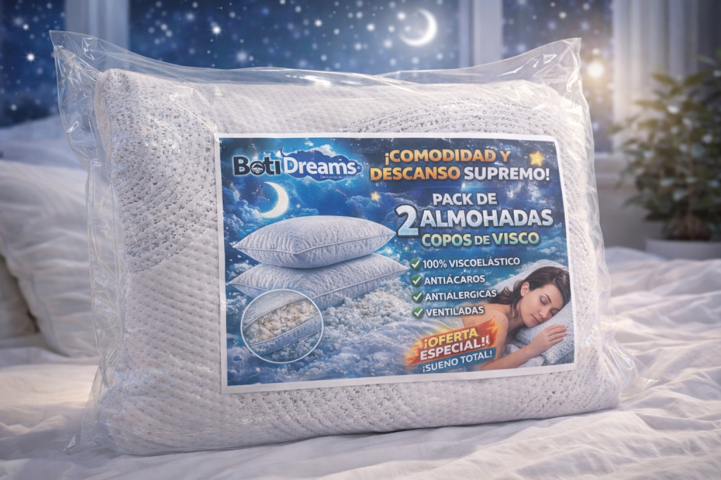 Experimenta un descanso de calidad con este pack de 2 almohadas de copos de visco, diseñadas para adaptarse a la forma de tu cabeza y cuello, mejorando la postura y reduciendo la presión durante el sueño.