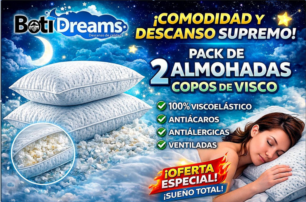 El relleno de copos viscoelásticos permite una mayor adaptabilidad que las almohadas tradicionales, ofreciendo una sensación mullida con soporte firme. Esta combinación favorece un descanso más profundo y reparador, ayudando a aliviar tensiones cervicales.